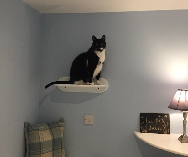 Then there are the wall shelves that allow my guests to utilise their jumping and stretching capabilities, these ensure the cats can constantly exsecise and can sit up high shoud they wish to?